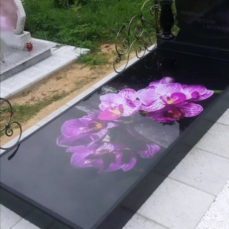 Ваша история навсегда. На стекле можно напечатать фотографию, рисунок или надпись, которые станут символом вашей связи с близким человеком. Таким образом, каждый раз, посещая место захоронения, вы будете ощущать тепло и светлую память о нем.